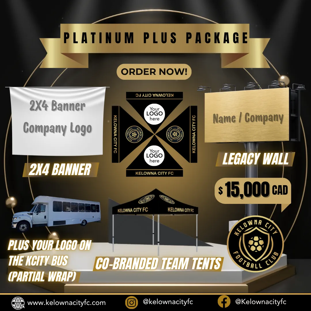 A custom co-branded 10x10 tent (LOGO x Kelowna City FC) used at our community events for 3–5 years, offering long-term visibility.